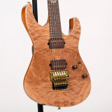 Suhr 2015 Collection Modern The Compression Burl Maple Modern features a stunning figured Mahogany Body, Compression Burl Top & Head cap. The Elliptical Mahogany neck is appointed with a Mexican Kingwood fingerboard and features our 2015 Collection appointments: brass ring dot position inlays, solid brass side dots, and 24K Gold Plated raised inlay logo and Maple leaf DNA inlay. Other custom 2015 Collection appointments include hand-finished Mexican Kingwood knobs, switch tip, cavity covers, tuner buttons and pickup covers. BODY Guitar Model: Modern Top Wood: C2015_Compression Burl, 2-Piece, 3/16” Body Wood: C2015_Flame Mahogany, 2-Piece Finish: Natural NECK Neck Wood: Genuine Mahogany Neck Back Shape: Modern Elliptical .800 - .850 Fingerboard Wood: Mexican Kingwood fingerboard Fingerboard Radius: 16” Frets: 24 Frets, Stainless Steel, Jumbo Face Dots: No Face Dots Side Dots: Brass Side Dots Nut: Floyd Nut Width: 1.650" ELECTRONICS Wiring: Standard Wiring Input Jack: Side Jack, Gold Neck Pickup: C2015_SSV, HB, Neck, Mexican Kingwood Middle Pickup: No Middle Pickup Bridge Pickup: C2015_SSH Plus, HB, Bridge 53mm, Mexican Kingwood HARDWARE Pickguard: No Pickguard - Rear Route Gears: Suhr Locking, Gold Bridge: Gotoh Floyd, Gold Hardware Color: Gold Hardware Knobs: Mexican Kingwood knobs Included Accessories: 2015 Collection Ivory Snakeskin and Ostrich Case with inlaid Longview Harvest Maple logo 10’ Suhr/Evidence Audio Solid Conductor Instrument Cable Suhr Distressed Leather Strap Wood Specification Sheet Set of D’Addario NYXL 1046 Strings (1) D’Addario NYXL Booket (1)